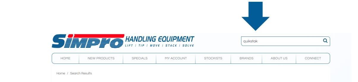 To search Simpro parts, please enter your search term, such as "Tipper", "Stacker", "Switch". Then filter by the class of item.