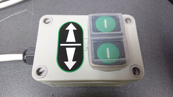 The standard enclosure has up/down buttons only, and is hardwired into the control circuit with a 3-metre lead. Functions such as key-switch and battery indicator must be accessed at the primary control panel.
