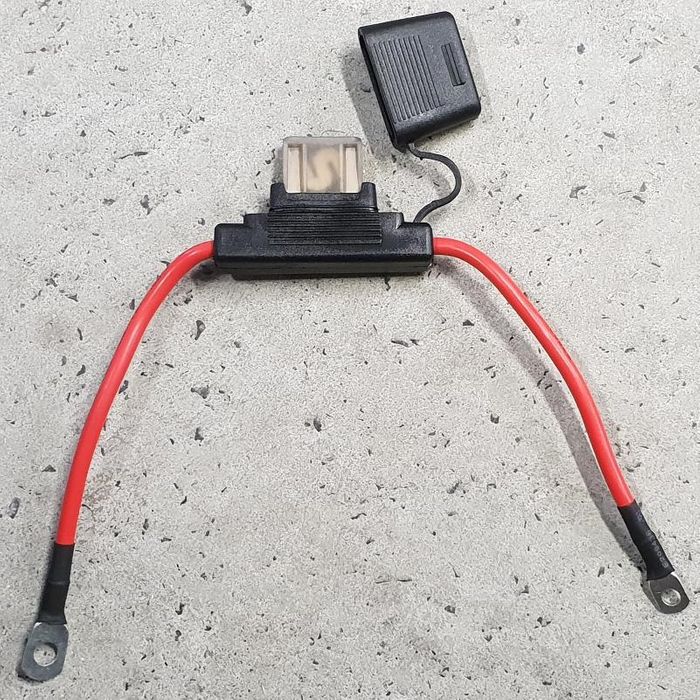 Battery Cable, red, 350mm, with Maxi Blade 120A fuseholder, 2x 6mm eye lugs