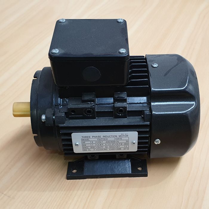 Simpro YSJ7132-8 415VAC 50Hz 3-phase motor, max power 1.1kW at 2800rpm, max draw 2.8 Amps at 400V.
